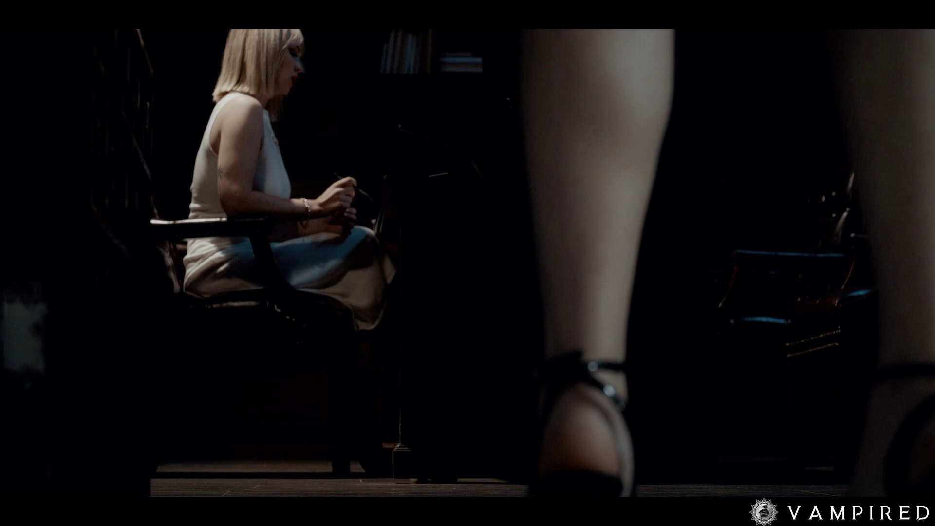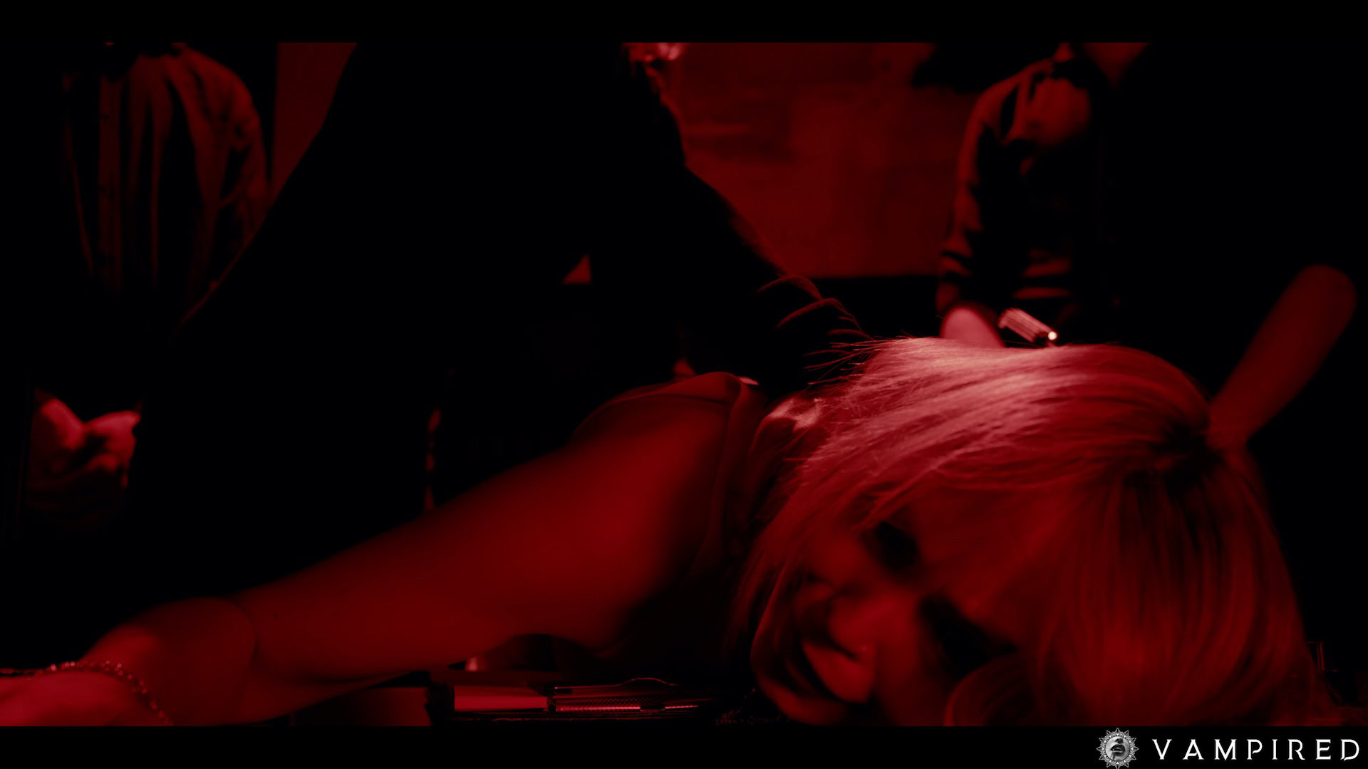 The security guards defile Victoria, stripping away her clothing and fucking her whilst she begins to lose her mind. With Victoria no longer in charge, Alina exposes her vampiric nature, feeding off of Victoria’s adrenaline-filled blood and indulging in her own sexual desires.