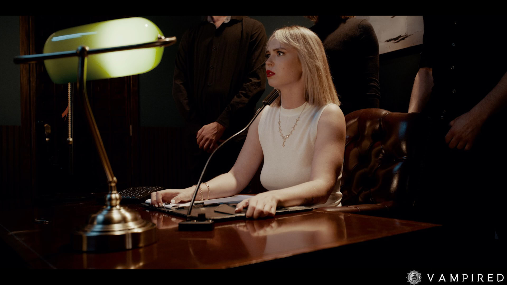 Alina begins to tell Victoria her own thoughts and feelings she has about herself. Victoria begins to lose her senses, falling into a dazed state as she stares into Alina’s eyes. Startled by Alina’s words, Victoria calls for her security to escort the strange woman out of the building. They do not listen to her. With all three placed into a trance, they obey Alina’s commands and pin Victoria down to her desk.